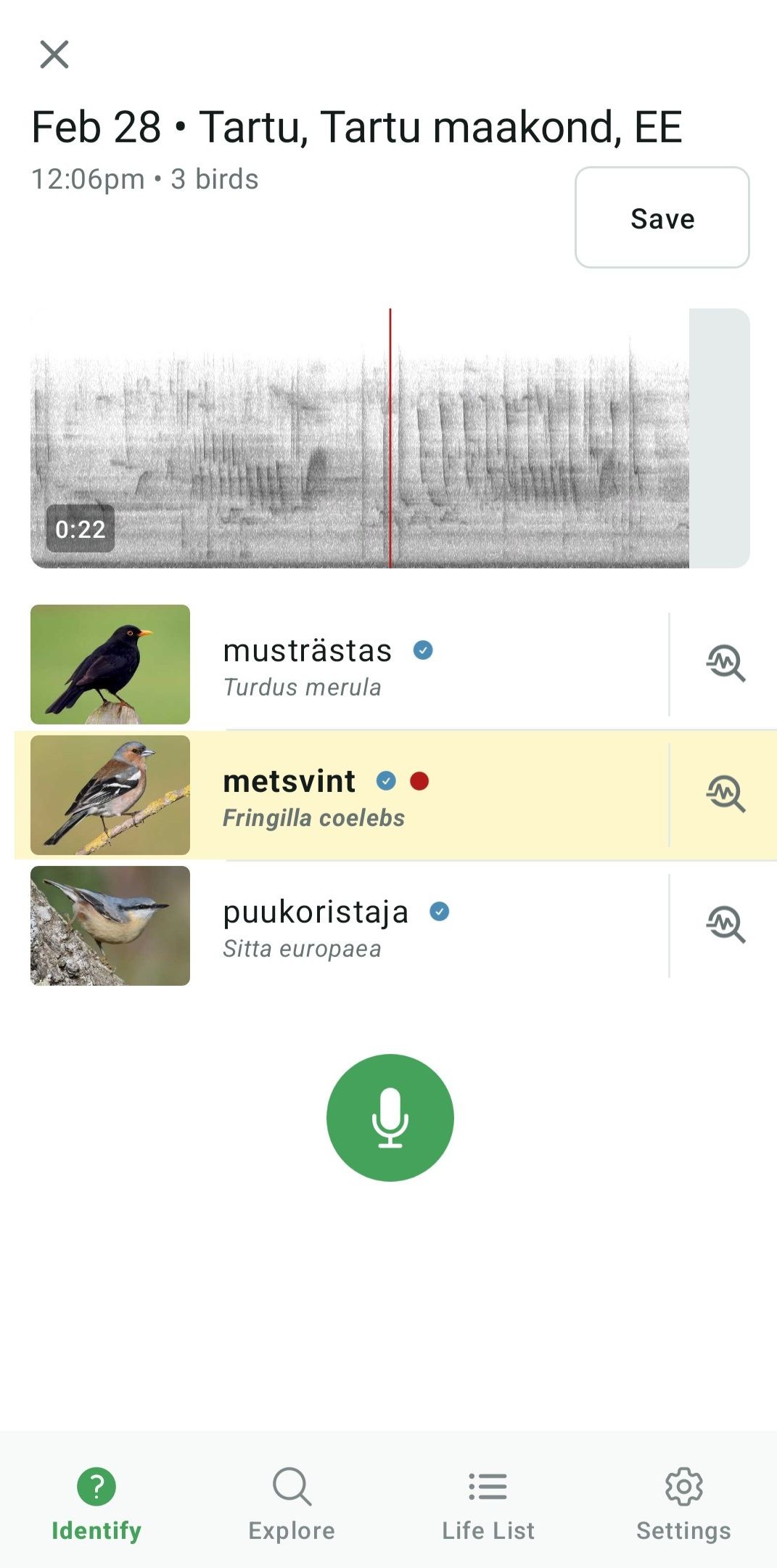 Lihtsate funktsioonidega kodumaine äpp, millega linnulaulu salvestada ja selle abil liiki määrata. Rakendus hõlmab kahtsadat Eestis levinumat linnuliiki, sh nende fotosid ja põhjalikku kirjeldust. Nõudlikumale kasutajale jääb liiginimekiri lühikeseks, kuid algajale linnuvaatlejale on see just paras, sest nii on eksimisruum väiksem. Kuna äpp on üleni eestikeelne, on tegu suurepärase õppevahendiga.